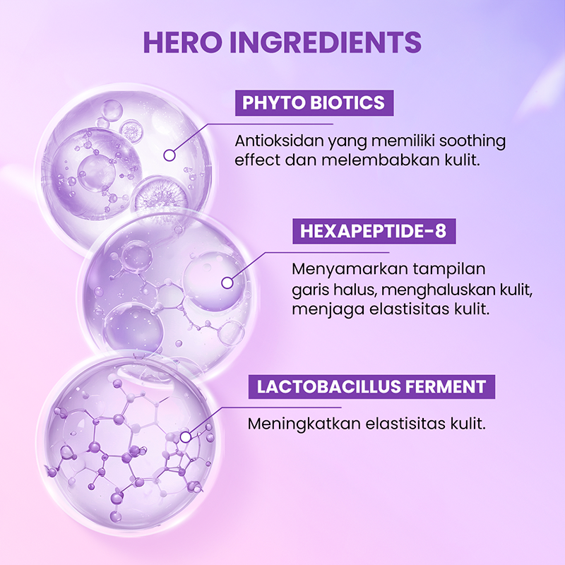 - Membantu menyamarkan kerutan halus dan merawat elastisitas kulit.