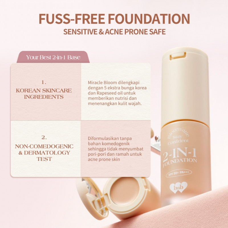 2-in-1 foundation yang ringan dan tahan lama hingga 16 jam dilengkapi balm concealer yang dapat menghasilkan tampilan flawless natural-matte, mengandung skin-loving ingredients, yang cocok untuk semua jenis kulit. Non-comedogenic.
