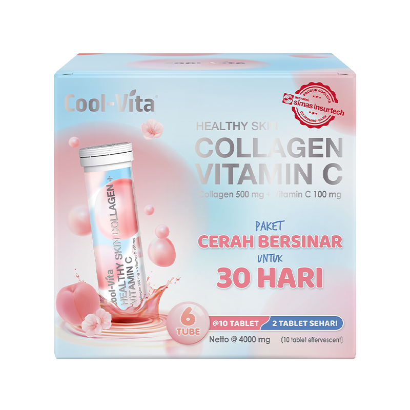 Coolvita Collagen Effervescent Tablet adalah suplemen collagen dan vitamin C dalam bentuk tablet effervescent rasa peach yang dapat membantu memelihara kesehatan kulit.