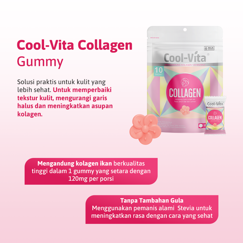 – Konsumsi yang praktis dalam bentuk gummy, dapat mengganti kolagen kapan saja.