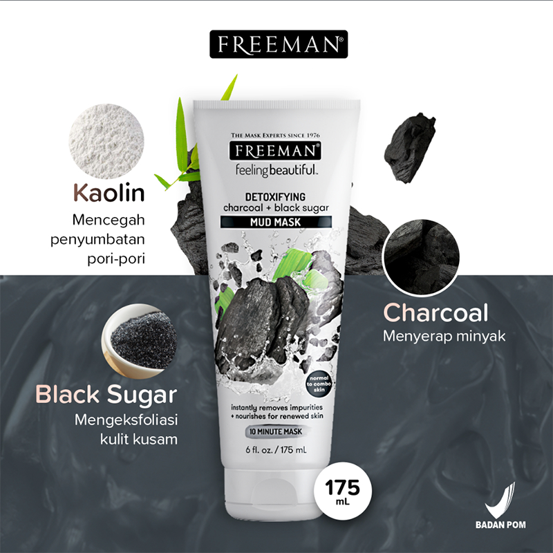This velvety mud mask worksits magic to moisturize, remineralize, and make skin sensationally soft. Dead Sea Minerals have anatural nourishing effect that boosts smoohness and overall skin health. Activated Charcoal helps lift away oils and toxins without over-drying skin. Black Sugar helps hydrate skin and smooth away roughness. Perfect for normal to combination skin. Made in USA.
