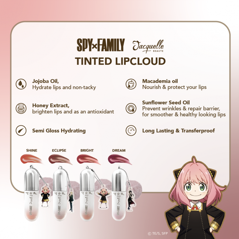 Jacquelle Clear Gloss Serum is a Hybrid of Serum & Lip Gloss which comes in 4 other shades; Rose, Ruby, Magic, and Glitter. Made with Sunflower Seed Oil, Macadamia Oil and Vitamin E, that could instantly hydrates and nourished your lips in seconds — feels like kissing the clouds! Every pretty bottle comes with collectable accessories. Keep this in your bag for quick reapplication throughout the day.