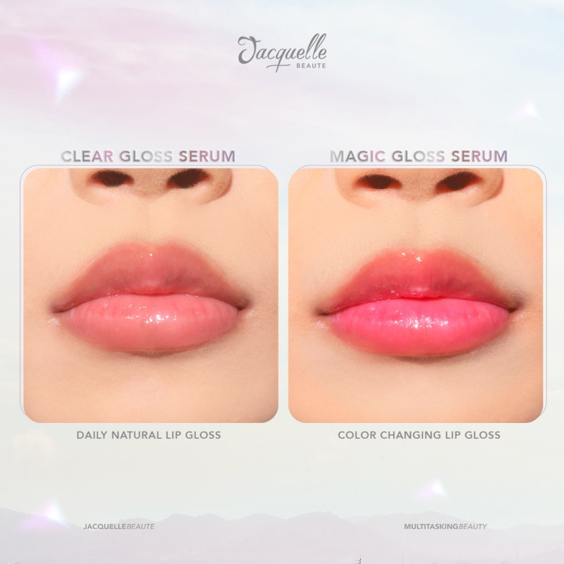 Jacquelle Clear Gloss Serum merupakan Hybrid dari Serum & Lip Gloss. Tersedia dalam 4 varian lainnya; Rose, Ruby, Magic, dan Glitter. Dibuat dari kandungan Sunflower Seed Oil, Macadamia Oil, dan Vitamin E, yang dapat mencerahkan dan menutrisi bibir selembut awan. Gloss ini dapat digunakan sendiri atau dengan produk bibir lain. Bawa ini kemanapun kamu pergi untuk pengaplikasian ulang!