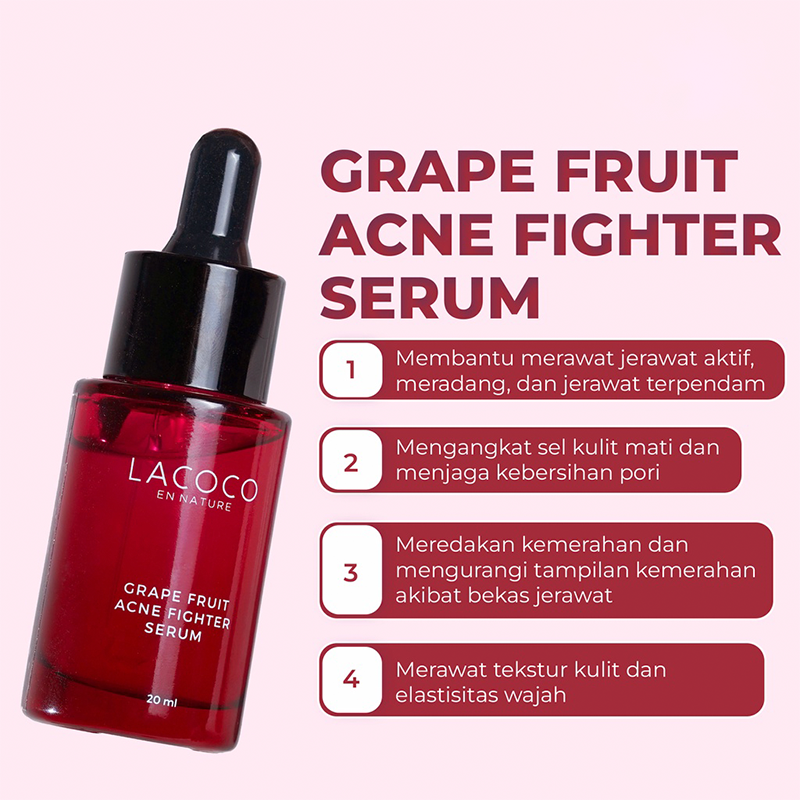 Grape Fruit Acne Fighter Serum merupakan serum yang berfungsi untuk merawat jerawat. Dengan kandungan utama berupa kombinasi antara buah dan bahan aktif, Grape Fruit Acne Fighter Serum dapat berfungsi secara maksimal untuk merawat jerawat.