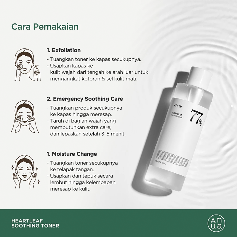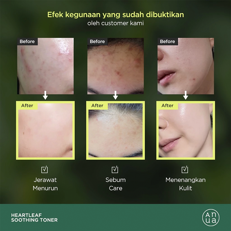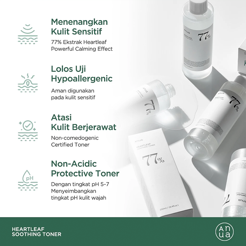 ✔️Kandungan 77% Ekstrak Heartleaf-nya membantu meningkatkan hidrasi pada kulit wajah yang sensitif sehingga tetap sehat terjaga, juga memberikan efek tenang pada kulit wajah. ✔️Lulus Non-comedogenic tes : tidak menyumbat pori-pori kulit sehingga aman untuk kulit berjerawat ✔️Hypoallergenic : Aman untuk kulit sensitif ✔️Mengandung kadar asam yang rendah sehingga membantu menjaga keseimbangan pH kulit, kulit jadi sehat dan terawat