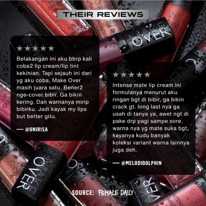 Aku udah pakai ini yang No.14 Coco dari jaman kuliah, kurang lebih 4 tahun. Warnanya cocok banget sama kulit aku yang sawo matang dan banyak temen yang tanya aku pakai lip cream apa, karena memang sebagus itu. Tipenya creamy, kalau reapply harus tipis banget pakainya, kalau gak tuh bakal sedikit menggumpal dan susah kering. Overall suka banget sih dan bakal terus pakai make over yang ini