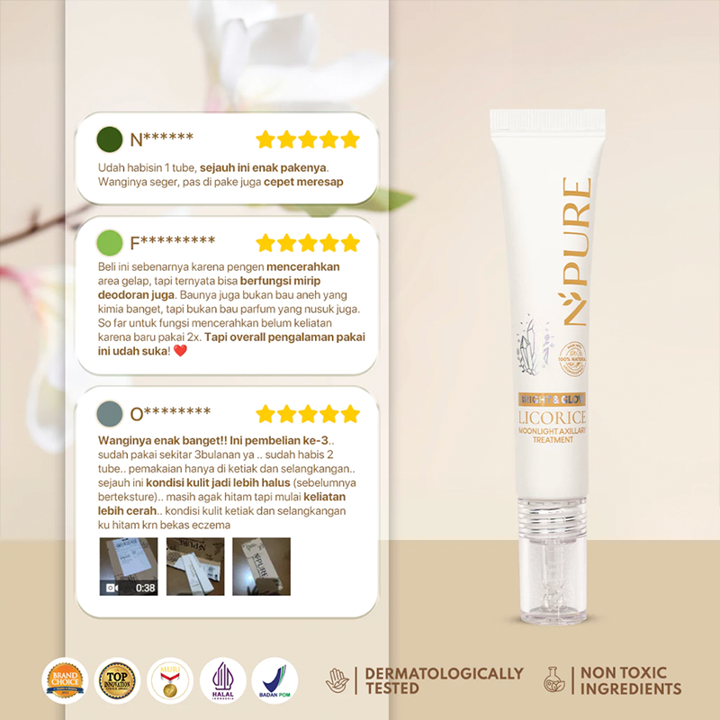 Aplikasikan pada area lipatan kulit yang gelap dan kasar. Dapat digunakan setelah waxing/mencukur. Untuk hasil maksimal, gunakan setiap hari pada pagi dan malam bersamaan dengan series Licorice lainnya.
