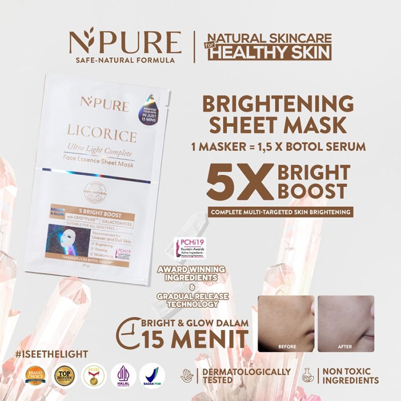 Masker wajah yang setiap lembarannya mengandung 5X BRIGHT BOOST untuk membantu mencerahkan, melembapkan, dan menghidrasi kulit wajah. Sesuai untuk kulit kusam dan tidak merata yang ingin tampak cerah bersinar. Untuk hasil maksimal, gunakan series Licorice lainnya.