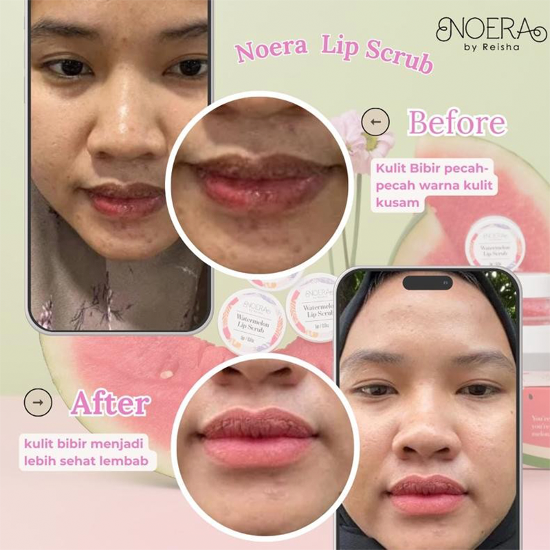 Ambil secukupnya dengan ujung jari tangan yang sudah dibersihkan lalu usap perlahan dengan gerakan memutar kecil dari samping bibir, keatas, ke samping satunya lalu kebawah. Ulangi secara perlahan lalu diamkan selama 2-3 menit. Bilas dengan air hangat atau hapus dengan tissue/kapas. Gunakan secara teratur 2-3 kali dalam seminggu. Untuk hasil maksimal kamu bisa oleskan Noera Watermelon lip balm setelahnya.