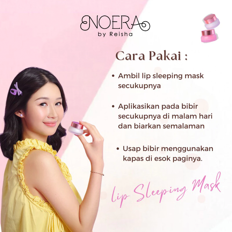 Noera lip sleeping mask adalah masker bibir untuk memberikan kelembaban ekstra pada bibir dan membuat sel kulit bibir mati menjadi lebih mudah terangkat sehingga bibir terasa lebih kenyal dan halus di pagi hari.