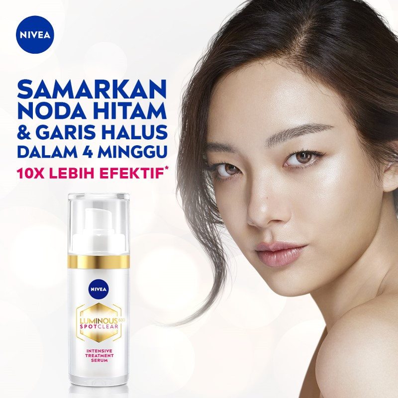 NIVEA Luminous630 Spotclear Intensive Treatment Serum. Formula dengan kandungan Luminous630, yang menyamarkan noda hitam pada kulit dan membantu mencegah munculnya kembali.