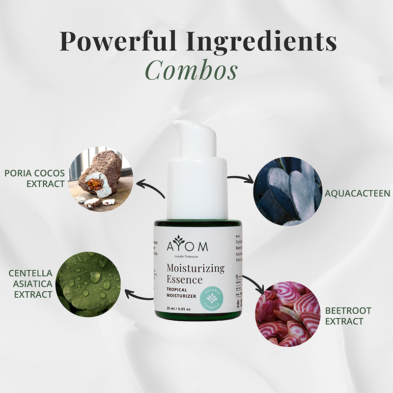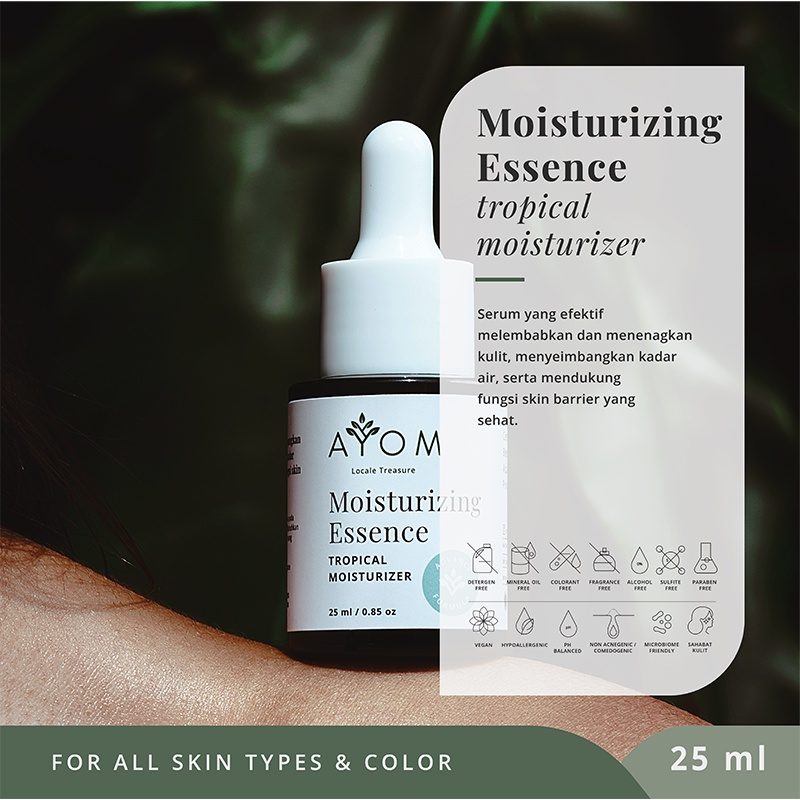 AYOM Moistrurizing Essence adalah serum yang efektif melembabkan dan menenangkan kulit, menyeimbangkan kadar air, serta mendukung fungsi skin barrier yang sehat.
