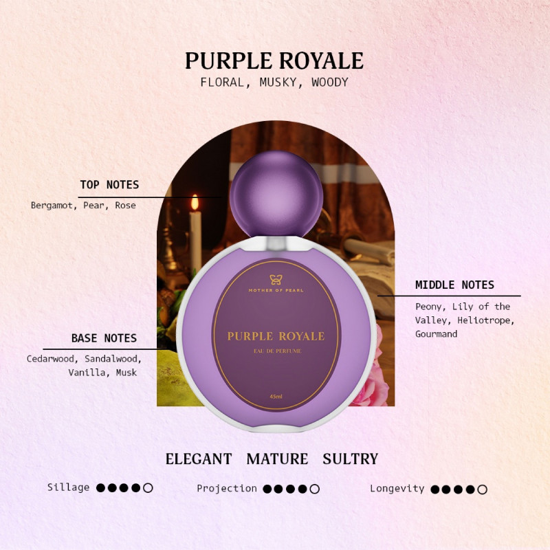 purple royale ini wanginya yang paling aku suka dan aku banget. floraly, powdery, feels nya feminin dan cantik aja gitu. ini juga tahan banget seharian dipake ...