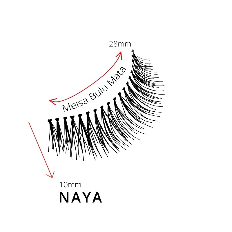 Bubuhkan sedikit perekat (lem bulu mata palsu) pada bagian pangkal bulu mata palsu. Rekatkan bulu mata palsu di atas bulu mata asli. Rekatkan perlahan dari bagian luar ke bagian dalam garis mata. Untuk melepasnya, lepaskan perlahan dari bagian luar ke bagian dalam garis mata.