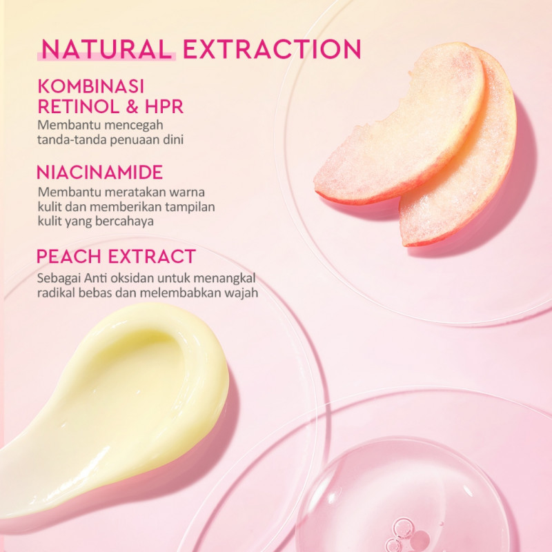 Peach retinol moisturizernya bagus banget melembutkan tekstur kulit tidak merata, wajah lebih cerah