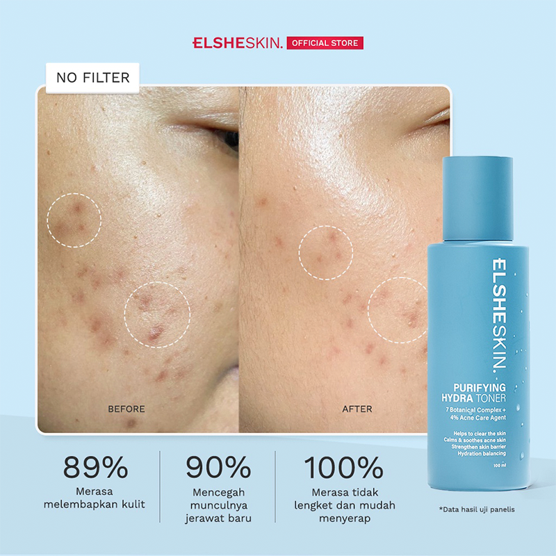 "ELSHESKIN Purifying Hydra Toner diformulasikan untuk meningkatkan level hidrasi pada kulit berminyak dan mudah berjerawat. Bekerja dengan cara menyeimbangkan tingkat hidrasi kulit, serta mencegah tumbuhnya bakteri penyebab jerawat. Kulit menjadi lebih lembab, menghasilkan efek glowing, memperkuat lapisan pelindung kulit merawat kulit berjerawat sekaligus mencegah jerawat datang lagi. Diperkaya dengan:
