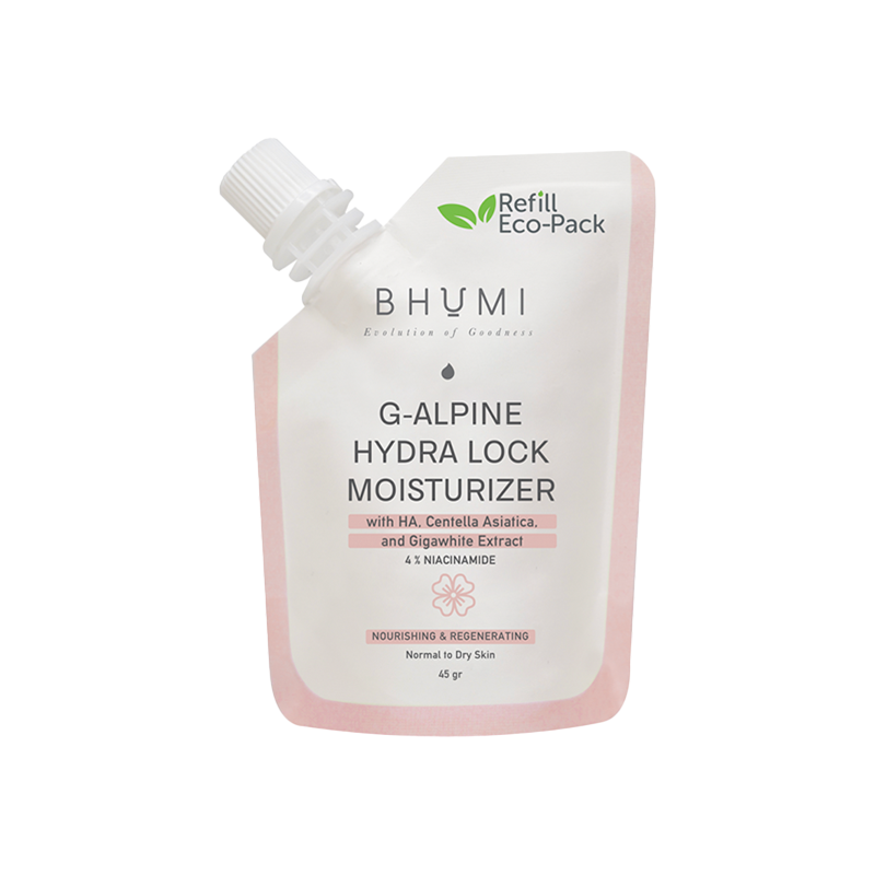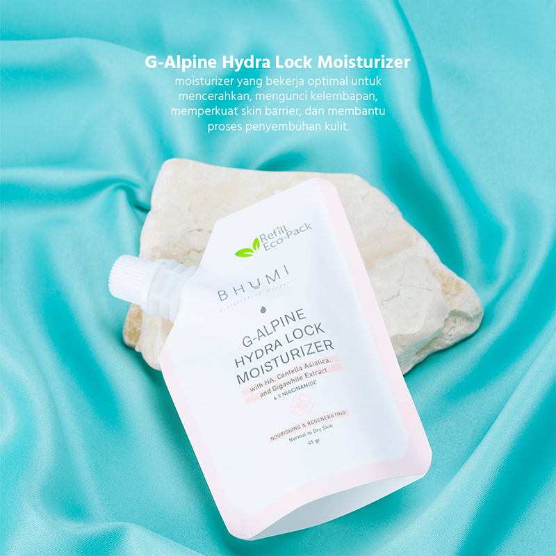 Moisturizer dengan tekstur gel ringan untuk menjaga kelembapan pada wajah dan menguncinya selama penggunaan pada wajah. G-Alpine Moisturizer membantu anda dalam menjaga kelembapan wajah, memperkuat Skin Barrier dan mencerahkan kulit secara maksimal dan alami. Pelembab yang menyerap cepat dengan Hyaluronic Acid untuk hidrasi yang tahan lama dan kemampuan luar biasa untuk meminimalkan munculnya kerutan. Mengandung Gigawhite Extract, ekstrak ajaib yang berasal dari perpaduan 7 perkebunan dari Alpine Mountain untuk mencerahkan kulit, merangsang produksi kolagen dan menjaga kulit tetap montok dan cerah. Centella Asiatica bahan yang ampuh untuk meningkatkan fungsi pelindung kulit. Niacinamide, Argan Oil, Wheatgerm Oil, Sweet Almond Oil, Avocado Oil, sumber Alpha Lipoic Acid yang dikenal sebagai antioksidan kuat untuk meremajakan kulit dan menjaga hidrasi tetap terkunci di dalam. Manjakan kulit yang tampak sehat!