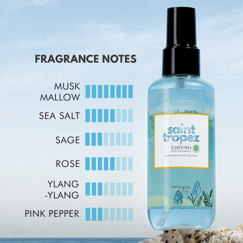 Nikmati jalan-jalan di sepanjang tepi pantai. Deburan ombak, udara segar dengan Sea Salt dan Musk Wallow. Dengan sempurna di campur sifat kayu dari Sage, dan diseimbangkan dengan Rose, Ylang-Ylang dan Pink Pepper.