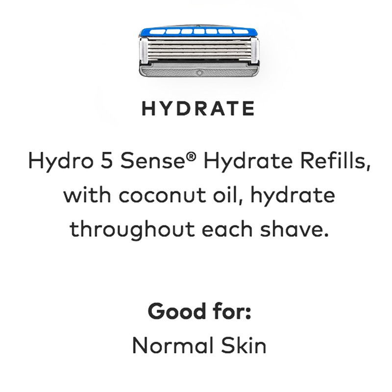 Hydro 5 Sense® Hydrate Isi Ulang, dengan minyak kelapa, hidrat di setiap bercukur. Untuk kulit normal.