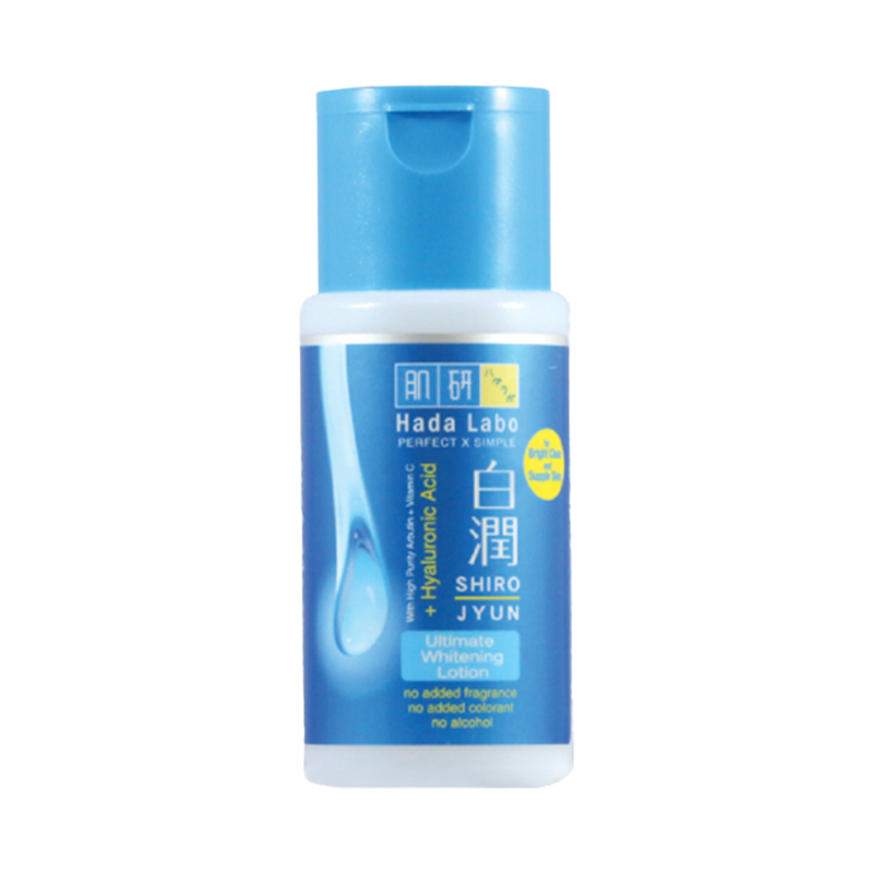 Hada Labo Shirojyun Ultimate Whitening Lotion adalah lotion yang dapat menghidrasi sekaligus mencerahkan kulit secara sekejap, dan mencegah timbulnya noda hitam dari dalam kulit. Diperkaya dengan combine power dari natural Arbutin dan Vitamin C untuk mencerahkan dan membuat kulit terasa lembut. Kandungan Hyaluronic Acids menghidrasi ke dalam kulit untuk memelihara kulit, melawan noda hitam, dan mengembalikan cahaya alami kulit. Arbutin adalah kandungan alami ekstak dari bearberry, untuk mencegah tirosinase, enzim yang dapat membuat noda hitam. Vitamin C berfungsi untuk mencerahkan kulit dan komponen spesial untuk memproduksi kolagen dan sebagai antioksidan.