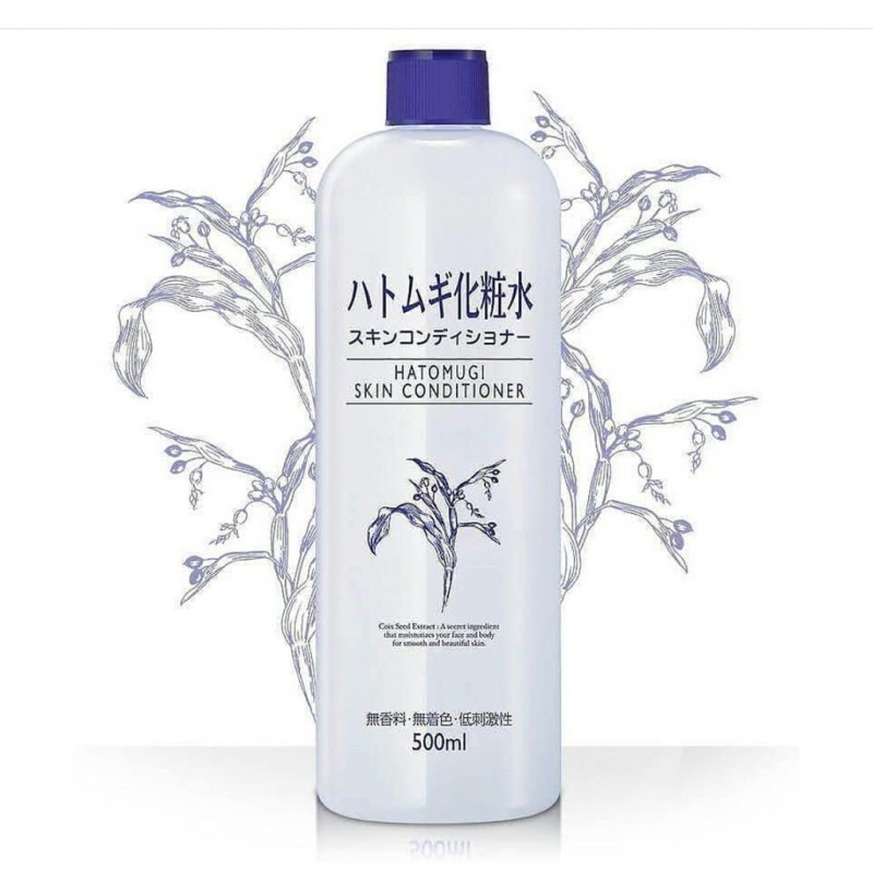 Hatomugi Skin Conditioner 500ml, toner + essence yang terbuat dari ekstrak jali-jali berfungsi untuk mendinginkan, menyegarkan dan melembabkan kulit. Hatomugi Skin Conditioner 500ml me-normalkan siklus pergantian sel kulit, mengatasi radang jerawat dan ruam (break outs). Selain itu juga efektif mengatasi bintik hitam, tekstur kulit tidak rata dan penuaan pada kulit. Hatomugi Skin Conditioner 500ml dapat digunakan di wajah dan kulit tubuh dan bermanfaat untuk mengecilkan pori-pori, mencegah timbulnya jerawat dan meningkatkan kadar air sehingga kulit menjadi lembab dan segar. Gunakan juga Hatomugi Skin Conditioner 500ml untuk kulit yang terbakar matahari.