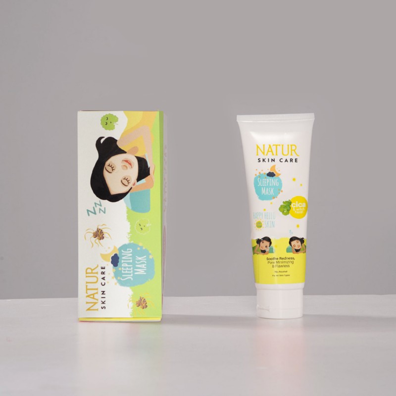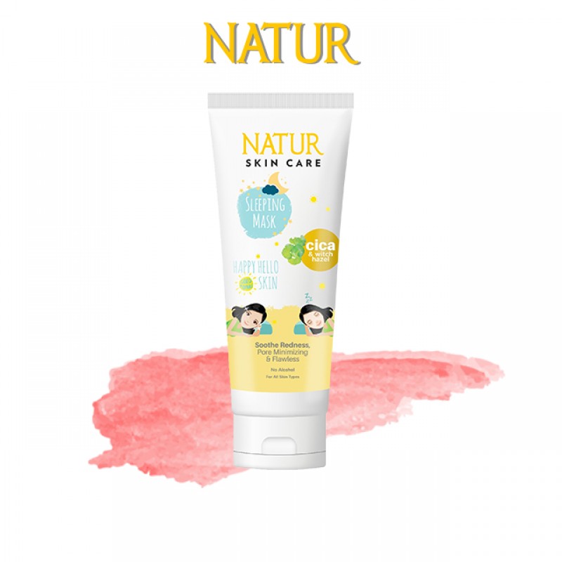 NATUR Sleeping Mask Cica dengan kandungan Centella Asiatica membantu menyamarkan bekas jerawat dan menyejukkan kulit yang kemerahan pada wajah serta diformulasikan khusus dengan Witch Hazel dan Allantoin yang mampu membantu mengecilkan pori – pori pada wajah. Dilengkapi dengan Natural Hyaluronate yang membantu menjaga kelembapan kulit sehingga dapay menghaluskan kulit. Tanpa kandungan alkohol sehingga aman digunakan setiap hari dan cocok untuk semua jenis kulit