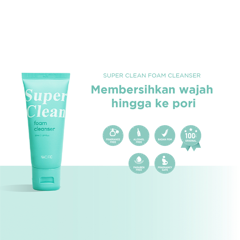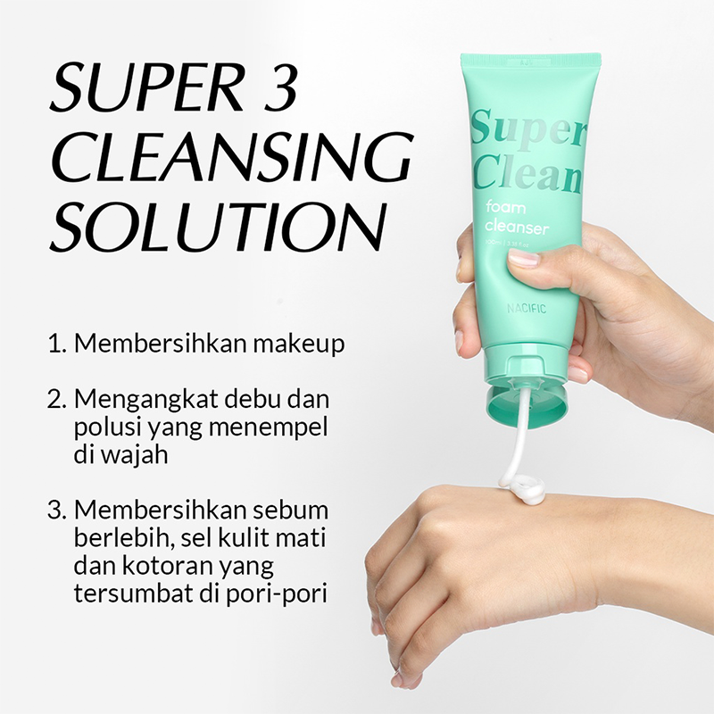 Foam cleanser dengan busa lembut yang melimpah, efektif untuk menghilangkan makeup, kulit mati dan juga membersihkan kulit secara mendalam sampai ke pori-pori. Mengandung Kaolin Clay, Tea Tree Leaf Oil, Pappermint Extract, Soda (Sodium Bivarbonate) sebagai kandungan utama. Super Clean Foam Cleanser adalah sahabat terbaik untuk kulit bersihmu!