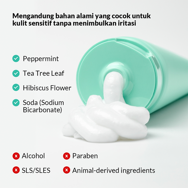 Water, PEG-8, Stearic Acid, Myristic Acid, Potassium Hydroxide, Glycerin, Lauric Acid, Palmitic Acid, Butylene Glycol, Glyceryl Stearate SE, Polyquaternium-7, Arachidic Acid, PEG-14M, Disodium EDTA, Fragrance(Parfum), Oleic Acid, Sodium Benzoate, Caprylyl Glycol, Silica, Sodium Bicarbonate, Sodium Hyaluronate, Kaolin, Melaleuca Alternifolia (Tea Tree) Leaf Oil, Hibiscus Sabdariffa Flower Extract, Mentha Piperta (Peppermint) Extract, 1,2-Hexanediol