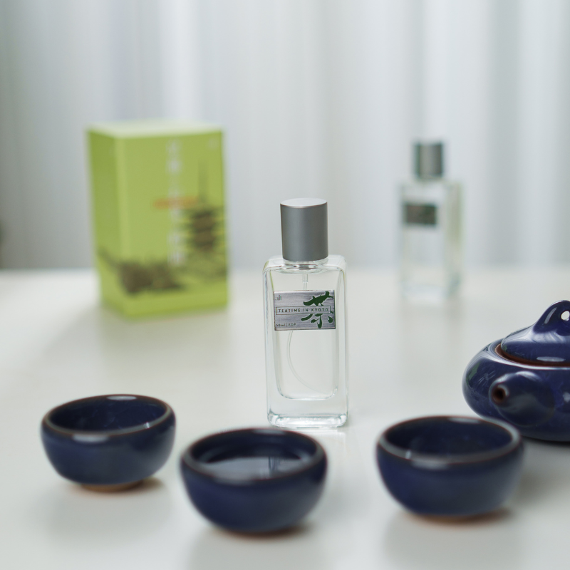 Experience the essence of 'Teatime in Kyoto': a harmonious blend of citrus blossoms and calming green tea, where whispers of musk and hints of eucalyptus intertwine, capturing the tranquil beauty of this ancient city. Immerse yourself in our unique scents, marrying the calming aura of Classical Japanese green tea ceremonies with the invigorating freshness of citrus, eucalyptus, and musk. Let the aroma transport you to the serene ambiance of Kyoto's cherished moments, where every sip is a symphony of flavors and every fragrance is a whisper of history.