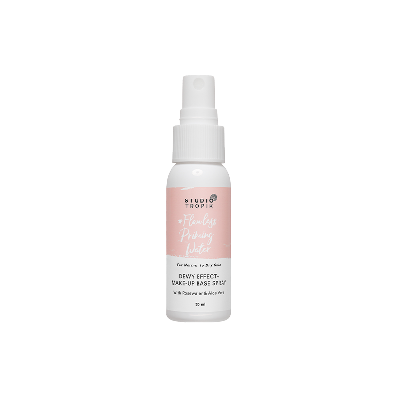 STUDIO TROPIK #Flawless Priming Water mengandung pelembab dan memberikan kesan wajah tampak “dewy glow” dan halus. Mengandung formula Rosewater dan Aloe Vera yang menyegarkan wajah. Dapat digunakan sebagai dasar make-up.