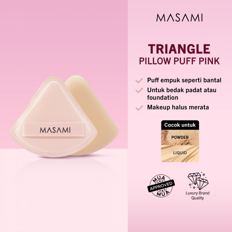 Triangle pillow puff apply liquid or cream makeup with natural finish.