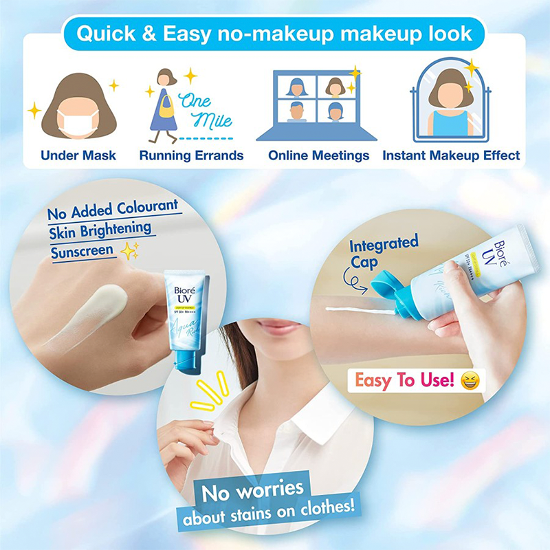 Varian sunscreen terbaru dari Rangkaian Biore UV dengan light up pearl yang mampu membuat kulit tampak glowing natural dengan merefleksikan sinar pada kulit. Sunscreen Biore UV Light Up Essence mampu meminimalkan melekatnya debu dan polusi (PM 2.5) yang menyebabkan kulit kusam.