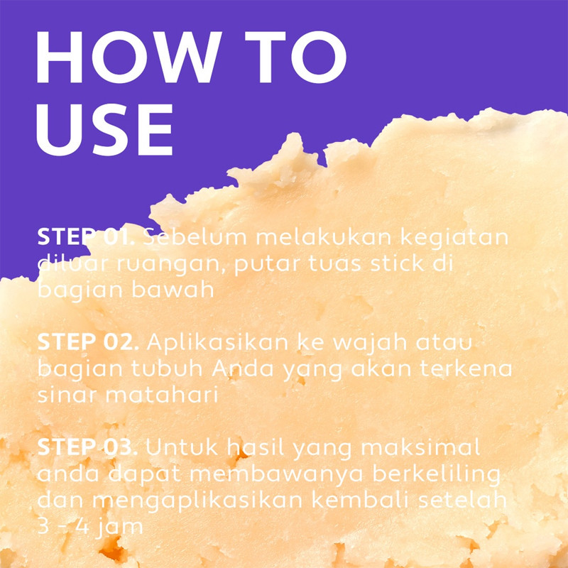 - Aplikasikan ke wajah atau bagian tubuh yang akan terkena sinar matahari