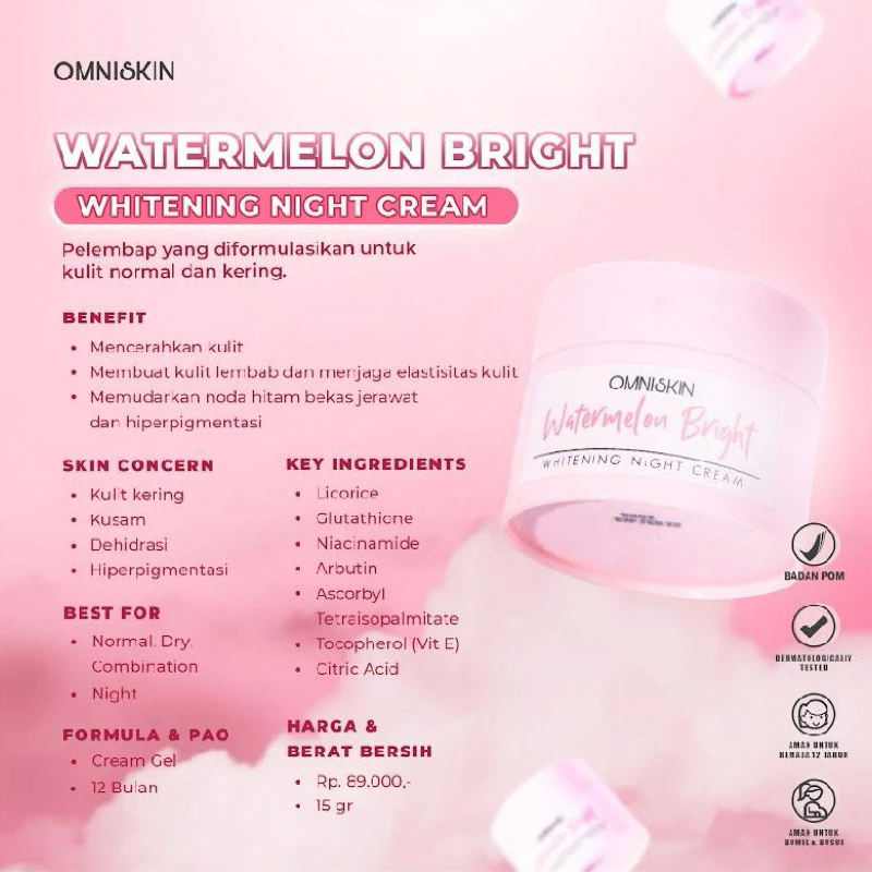 Tertarik karena ada unsur semangkanya, yang mengingatkan sama brand glow recipe. Teksturnya cenderung thick gitu, semacam mouisturizer zaman dulu, wanginya seger tapi nyengat, agak ganggu sih menurutku. Sejauh pemakaian sih ga ada efek negatif ya, bikin kulit agak cerah, lembap di pagi hari sih. Sebenernya secara formula suka, tapi wanginya ganggu jadi ga aku terusin setelah pemakaian sepuluh hari.
