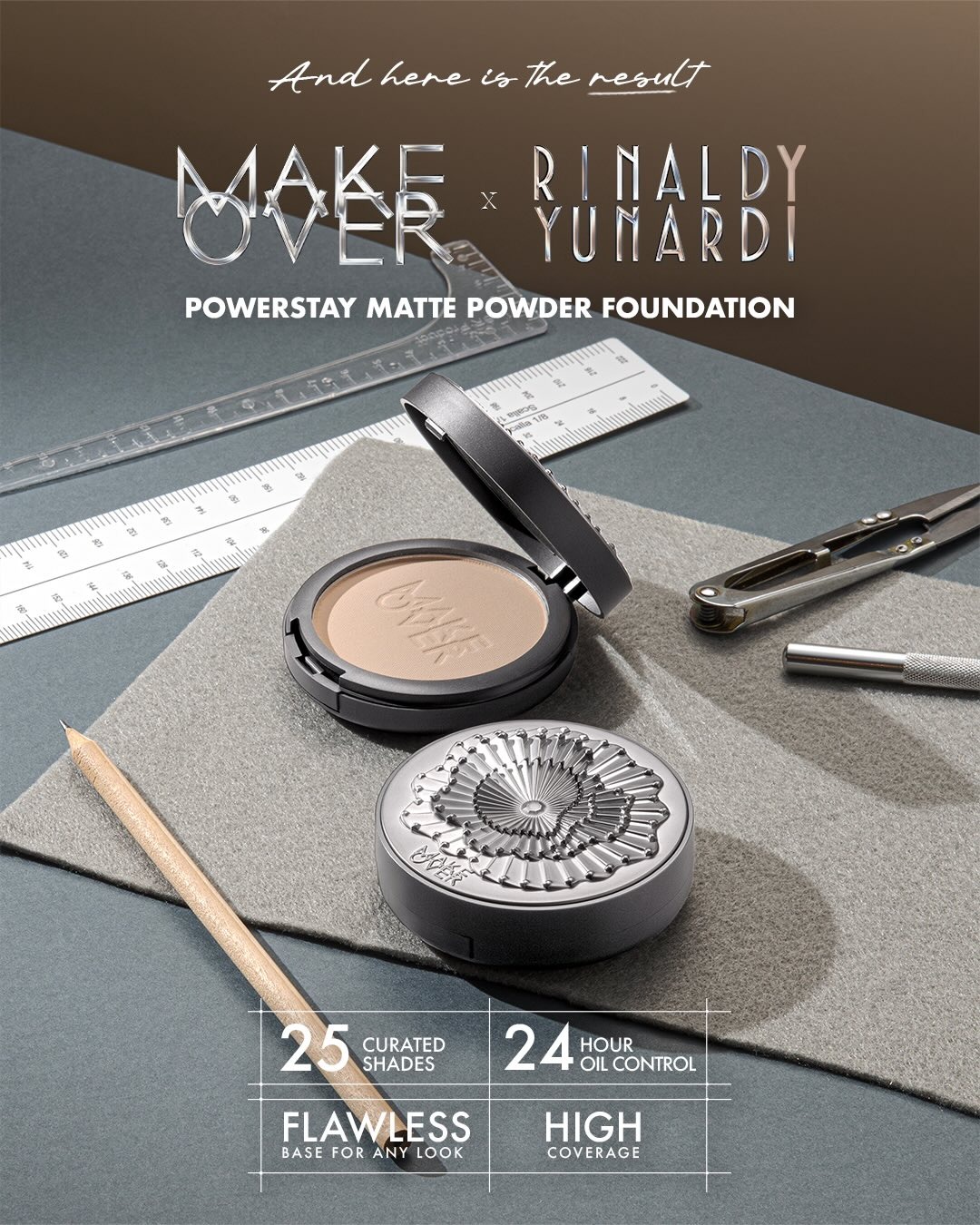 Make Over is big on their complexion product, makanya buat kolaborasi kali ini mereka secara spesial menyulap kemasan Powerstay Matte Powder Foundation, agar kelihatan lebih luxurious.