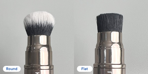- Round Brush: bentuknya bulat, berfungsi untuk membaurkan foundation, skin tint, atau cream blush supaya hasilnya lebih natural