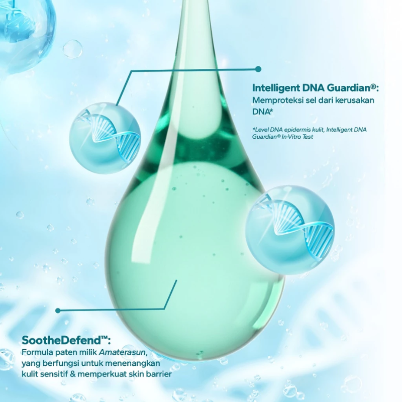 Teruji klinis tidak berpotensi menyebabkan komedo maupun jerawat. Diformulasikan dengan Intelligent DNA Guardian®, dengan perlindungan 7-in-1 terhadap: UVA, UVB, Blue Light, Polusi, Radikal Bebas, Tanda Penuaan Dini, dan Kerusakan DNA*. Teksturnya ringan, mudah diratakan tanpa meninggalkan residu.