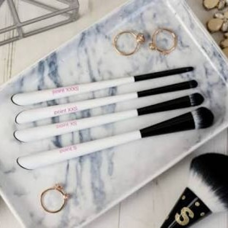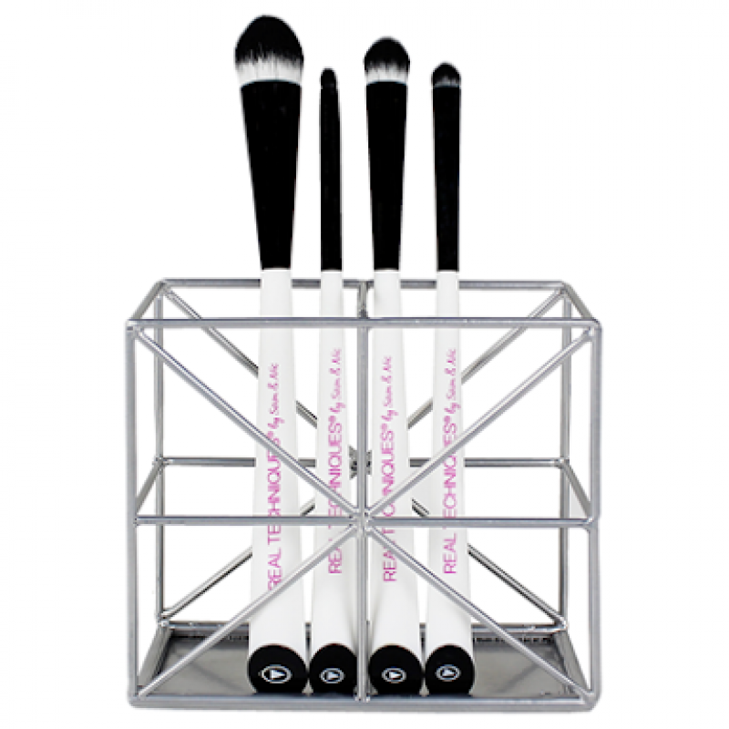 4 sizes for detailed application + precision blending point S: all-over shadow, concealer, contour lines, highlighter + more point XS: color correcting, concealer, crease shadow, +more point XXS: detailed highlighting, detailed shadow, lip blending, + more point XXXS: brow filling, Smokey liner, smudged liner, lip detailing + more one-size-fits-all brush stand: store your brushes upright Play up your makeup and tell us how you use the points #real techniques