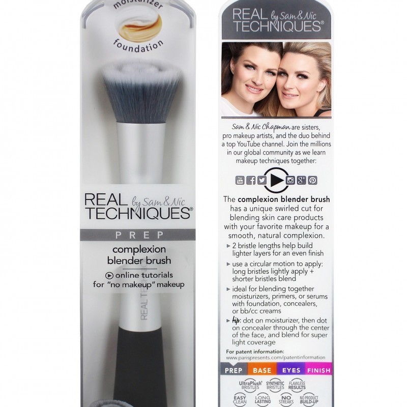 The complexion blender brush has a unique swirled cut for blending skin care products with your favourite makeup for a smooth, natural complexion.