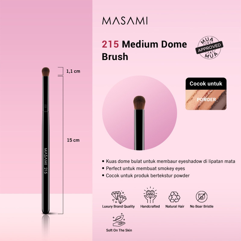 Dome brush dengan medium size, Bulu natural untuk powder product, Cocok untuk mengaplikasikan warna yang intens di crease dan warna yang lebih deep pada outer crease, Menghasilkan smokey-eyes atau untuk smudge pencil liner
