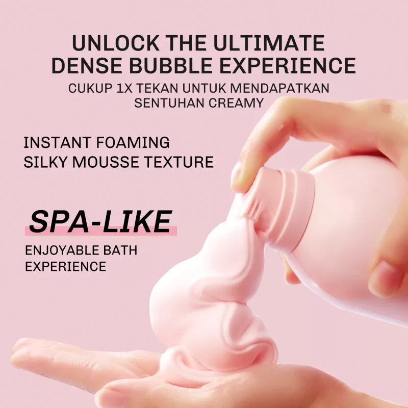 Shower Mousse dengan kandungan skincare grade dengan bahan dasar Amino Acid, Ceramide, Niacinamide dan 4D Hyaluronic membersihkan dengan lembut, mencerahkan serta memperkuat skin barrier. Menjaga kelembapan serta menjadikan kulit glowing.