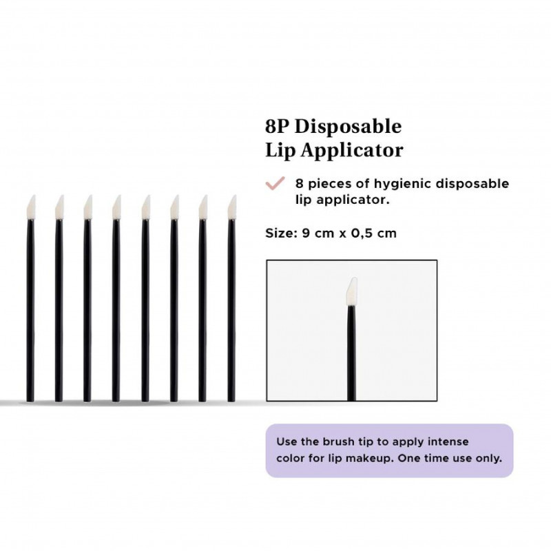 Use the brush tip to apply intense color for lip makeup. One time use only