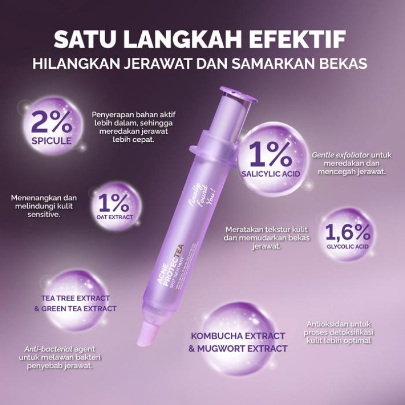 With 2% Spicule, 1% Salicylic Acid, 1,6% Glycolic Acid, 1% Oat Extract, Mugwort Extract, Tea Tree Extract, Green Tea Extract and Kombucha Extract.