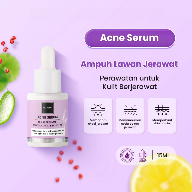 Di dalam Acne Serum terdapat kandungan Tea Tree Leaf Water, Salicylic Acid, Jeju Centella Asiatica, Liquorice Extract dan Vitamin C yang dimana bermanfaat sebagai :