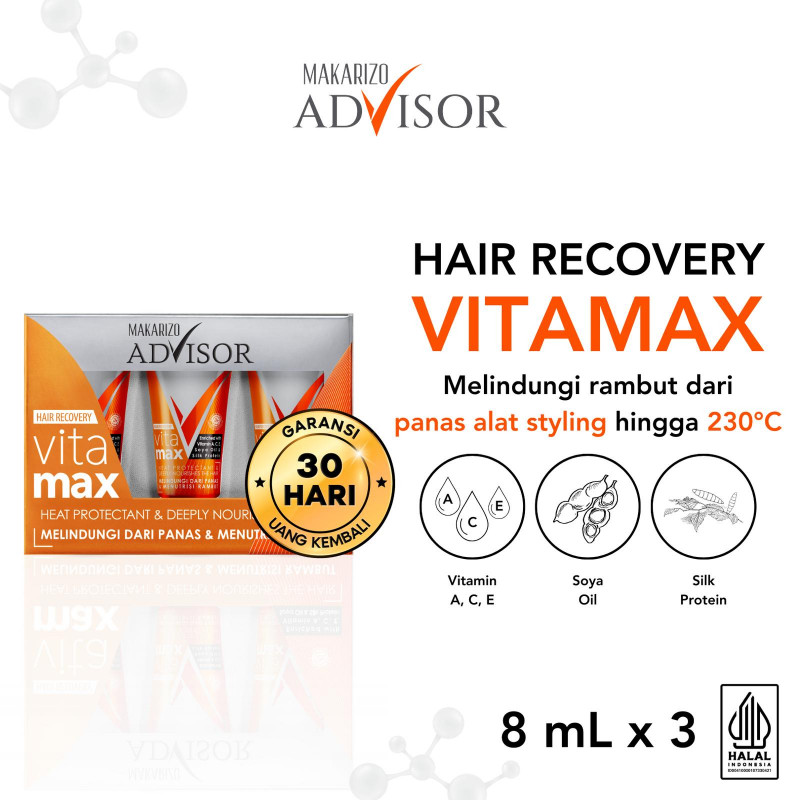 • Makarizo Advisor Vitamax merupakan vitamin rambut pertama yang berfungsi tidak hanya sebagai hair treatment tapi juga sebagai heat protectant yang melindungi rambutmu dari panasnya alat catok.