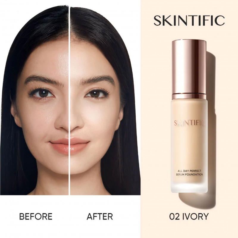 All Day Perfect Serum Foundation dengan medium to full coverage dan soft matte finish yang mudah di build-up. 24-H Longwear, menyatu dengan sempurna dan tahan lebih lama. Mengandung Hyaluronic Acid, Sea Moss, Centella, EGT (L-Ergothioneine), Carnosine, serta Tri-Zinc, menjadikan kulit tetap lembab dan terhidrasi, serta minim oksidasi, minim transfer, dan minim crack/patchy. Tersedia dalam 10 shades.