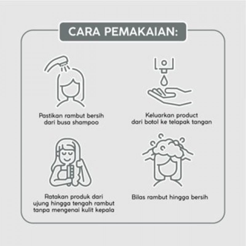 - Ambil secukupnya - Setelah menggunakan Shampoo, aplikasikan dengan Amino Acid Protein Hair Conditioner, gunakan dari batang hingga ujung rambut - diamkan selama 5 menit - Bilas hingga bersih
