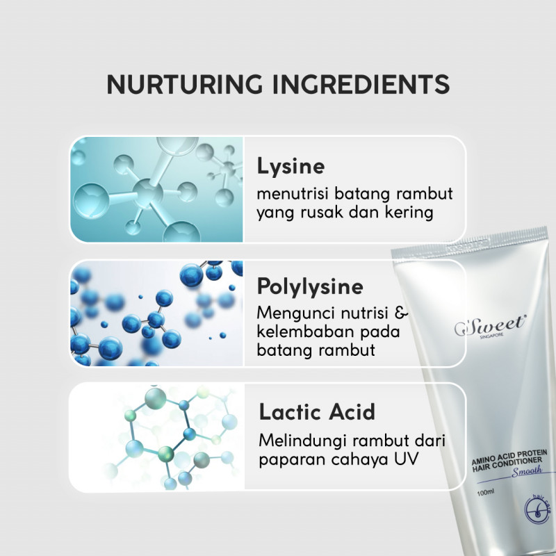 - Lysine : Kandungan Lysine bermanfaat untuk menutrisi batang rambut yang rusak dan kering.