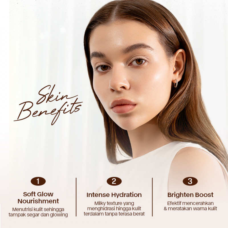 Membantu memperkuat skin barrier, menyamarkan kemerahan dan pori, serta mencerahkan warna kulit agar tampak lebih merata dan sehat.