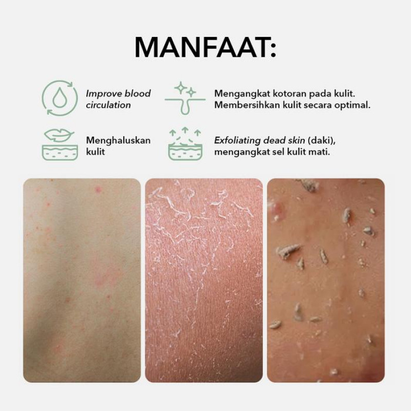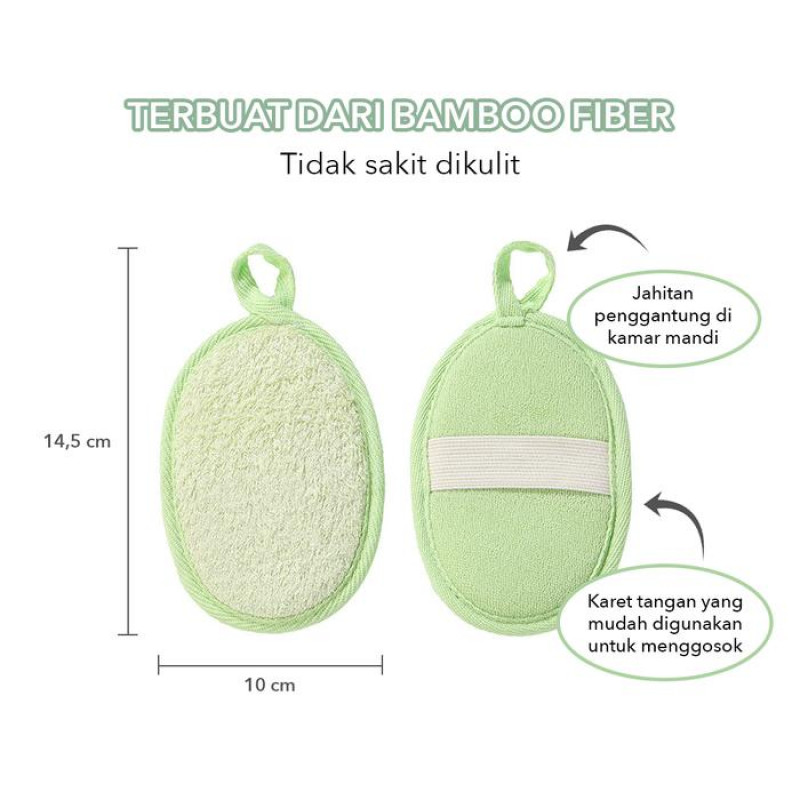 Terbuat dari Bamboo Fiber (tidak sakit dikulit), (ada jahitan pengantung dikamar mandi), (Karet tangan yg gampang digunakan untuk gosok)